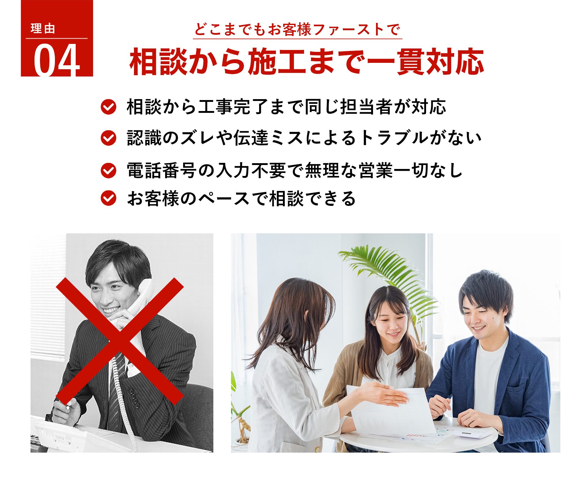 当社は、ご依頼からお引き渡しまで